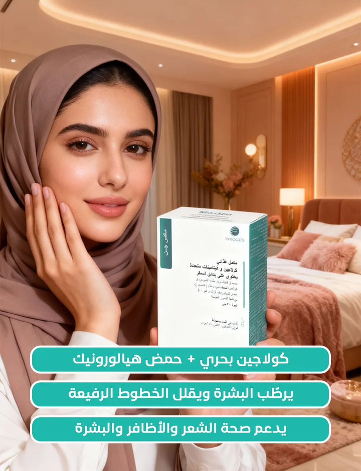 ماكس جن، تقنية ليبوسومالية مبتكرة تُعزز الامتصاص والفعالية، مع الكولاجين البحري + حمض الهيالورونيك + إنزيم كيو 10 وفيتامين سي، لجمالٍ فائق، وصحةٍ للبشرة، ودعمٍ للعظام.