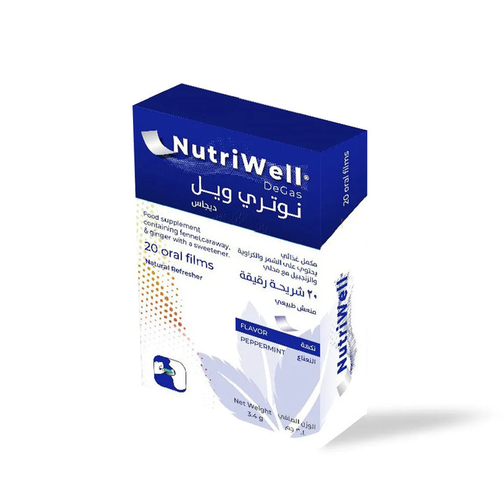 نيوتري ويل®️ ديغاس، فيلم سريع اللأمتصاص ، مُصمم بمزيج من أعشاب الأيورفيدا التقليدية مثل الشمر والزنجبيل والنعناع، المعروفة بخصائصها الطاردة للغازات وتحسين الهضم