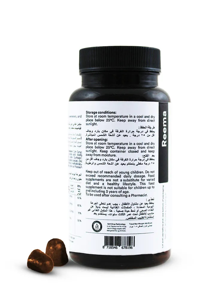 حلوى لذيذة الطعم، تُعزز جمالكِ الطبيعي من الداخل، لاحتوائها على عناصر غذائية حيوية وفيتامينات أساسية تُساعد على جمال الشعر، وقوة الأظافر، وإشراقة البشرة.-